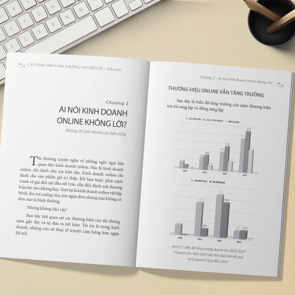 - CHƯƠNG 2 - AI NÓI KINH DOANH ONLINE KHÔNG LỜI?: “Kinh doanh online bấp bênh!” - Nhận xét này hoàn toàn đúng. Nhưng trong sự bấp bênh lại có sự bền vững. Điều bạn cần là có đủ kiến thức để ngự trị môi trường này, quản trị rủi ro và nắm bắt cơ hội.