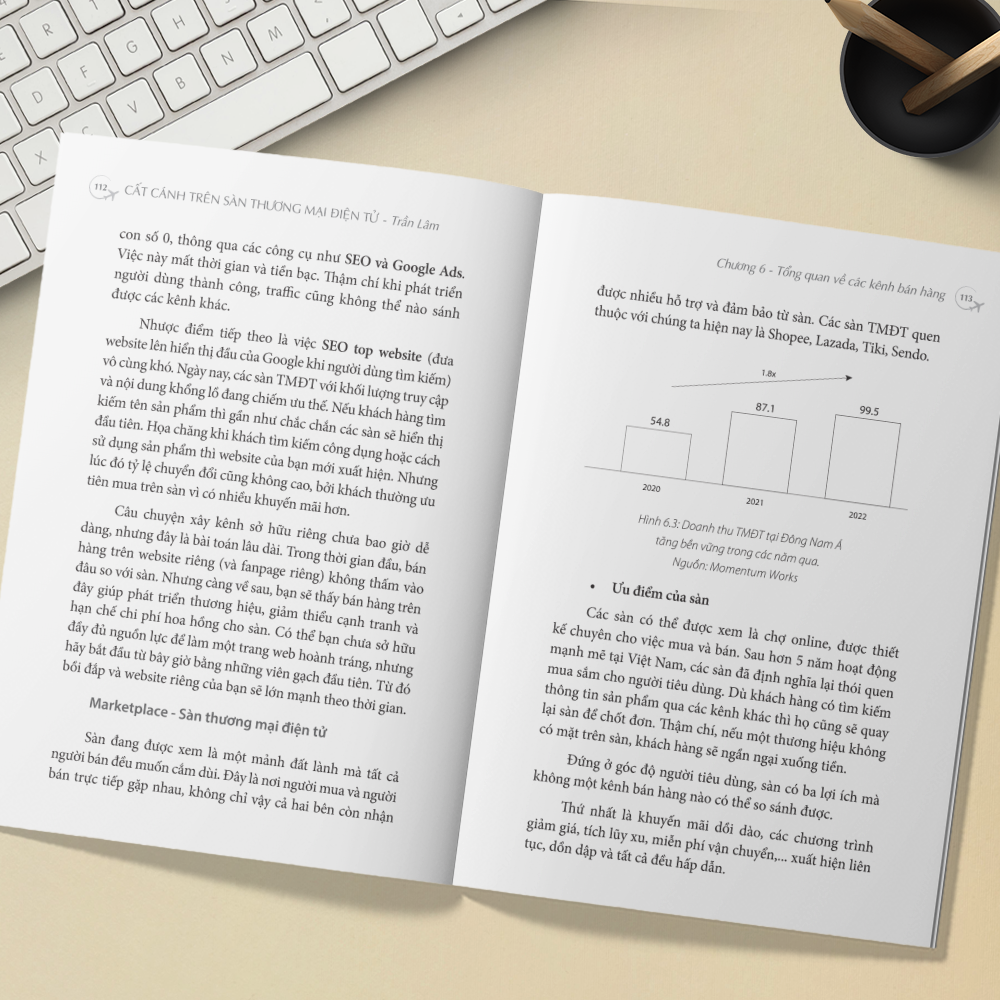 - CHƯƠNG 6 - TỔNG QUAN VỀ CÁC KÊNH BÁN HÀNG: Để kinh doanh thương mại điện tử, bạn phải hiểu về bối cảnh nơi mình đang kinh doanh. Chương này cung cấp một bức tranh tổng quan về các kênh bán hàng, giúp bạn hiểu được đặc điểm và lợi hại của từng kênh. Từ đó, bạn có thể đưa ra được chiến lược kênh tinh gọn và phù hợp cho mình.