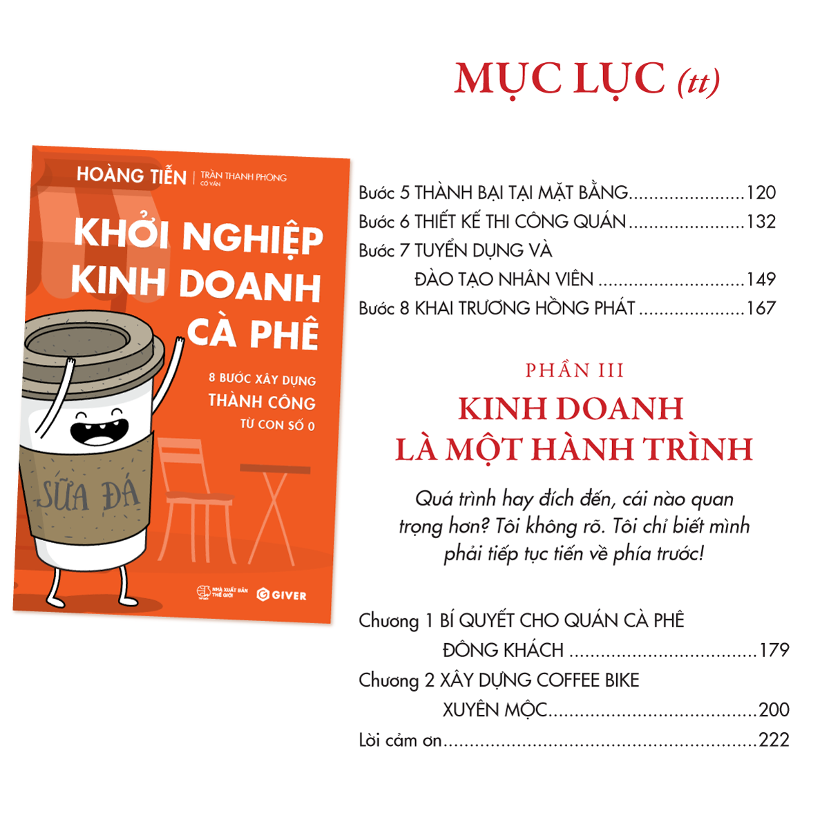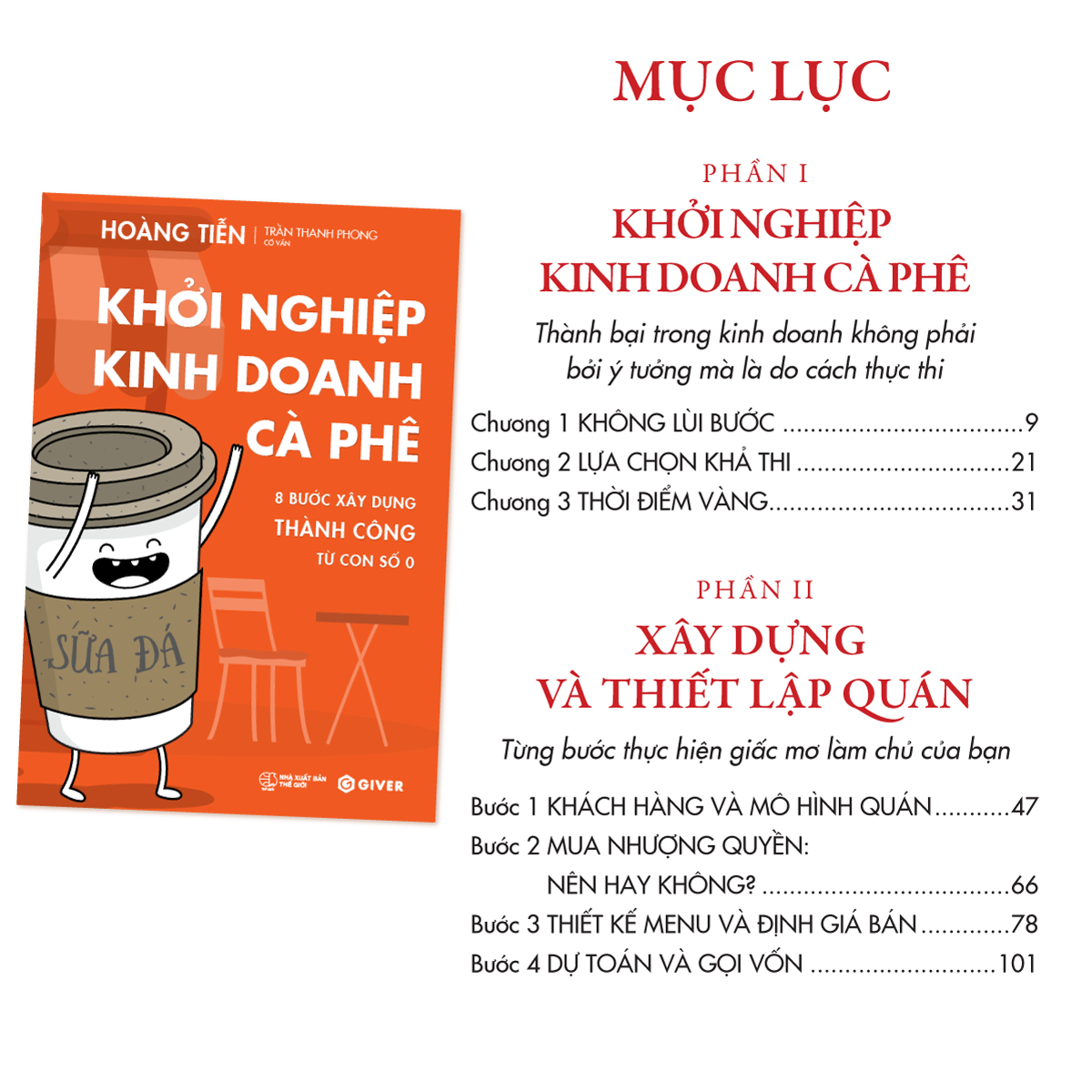 • Chương 8: Làm sao để biến quán thành nguồn thu nhập thụ động. Các bước để chuyển giao vận hành. Tạo tiền đề để nhân rộng hoặc nhượng quyền một cách bài bản.